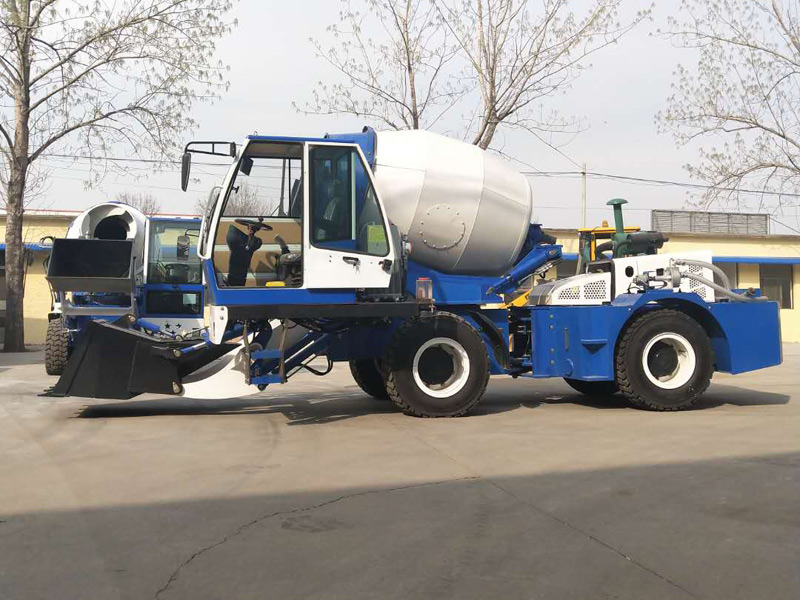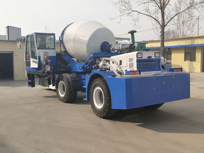 卸料:操作者利用操作桿通過270°回轉(zhuǎn)攪拌桶,在車輛周圍2m高度傾倒混凝土。